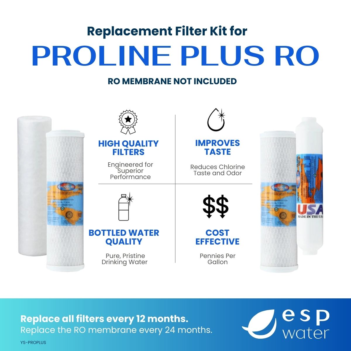 Replacement Filter Kit for Proline Plus Reverse Osmosis System (RO Membrane Sold Separately)