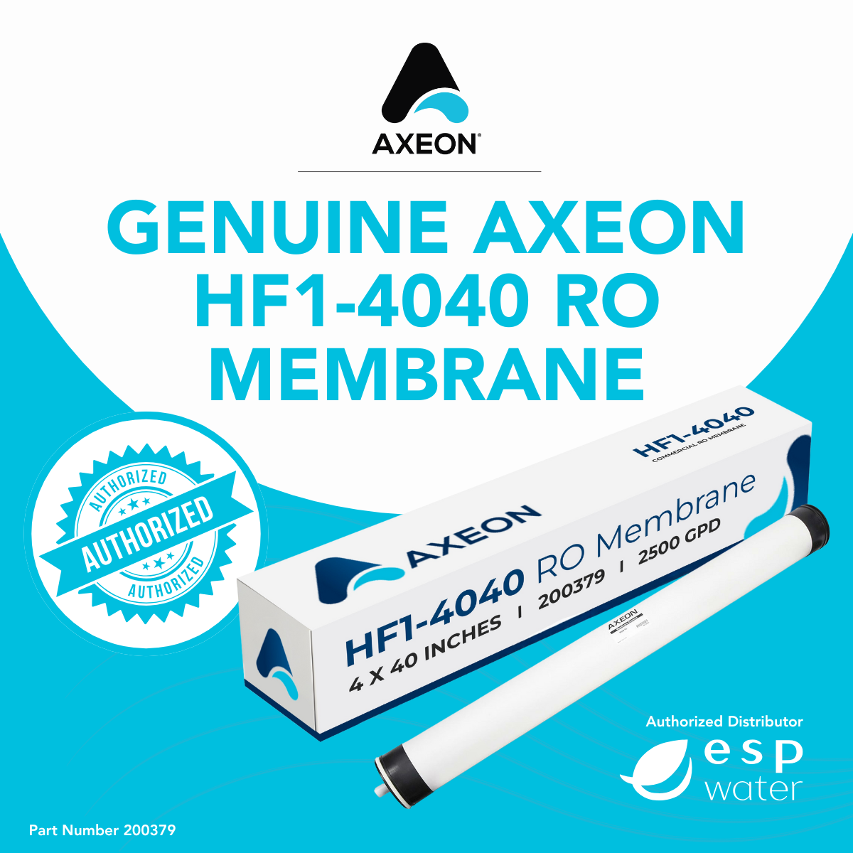 Genuine Axeon HF1-4040 RO membrane offers reliability, high performance, and consistent results for commercial applications. This 4-inch by 40-inch membrane ships dry for indefinite shelf life, is 100% vacuum integrity tested, and can also be ordered as individually wet tested.