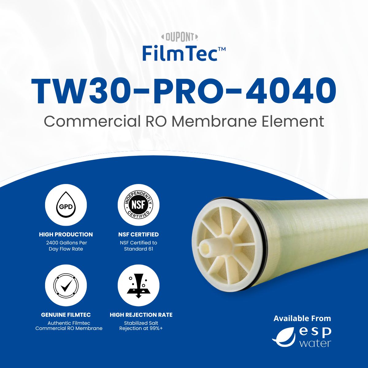 Las membranas FilmTec TW30 PRO-4040 RO son ideales para diversas situaciones y ofrecen altos niveles de rendimiento a bajas presiones aplicadas. Esta membrana RO lidera el estándar para la producción de agua de alta calidad y se utiliza en varias aplicaciones comerciales.
