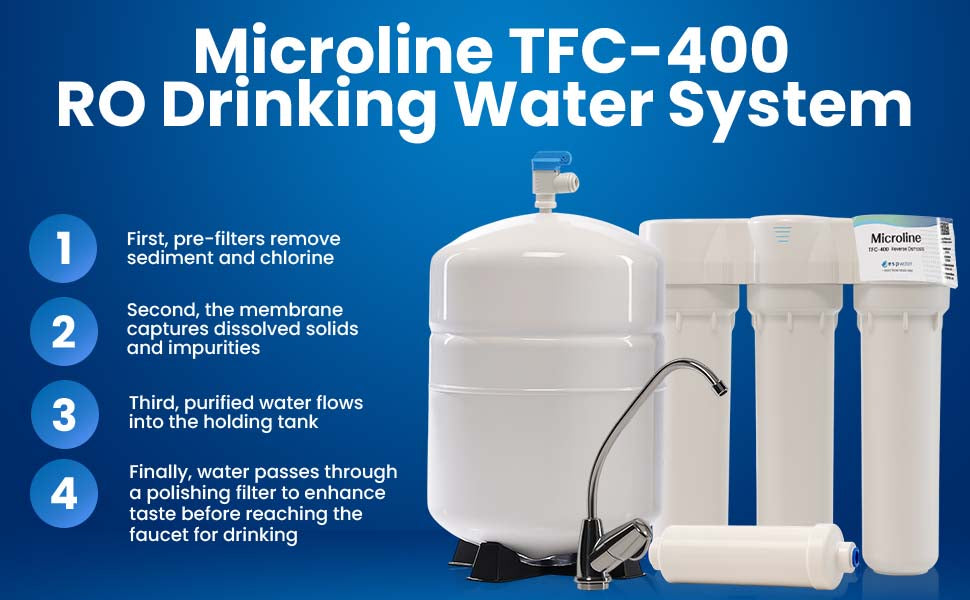 The Microline TFC-400 is a reliable and cost-effective reverse osmosis filtration system that delivers up to 50 gallons per day of clean, great-tasting water directly from your kitchen faucet. With four stages of filtration, the TFC-400 can significantly enhance the taste, odor, and overall quality of your drinking water by removing up to 99% of impurities and pollutants including lead, pesticides, VOCs, chlorine, arsenic, and more. Read the full review for the Microline TFC-400 RO drinking water system.