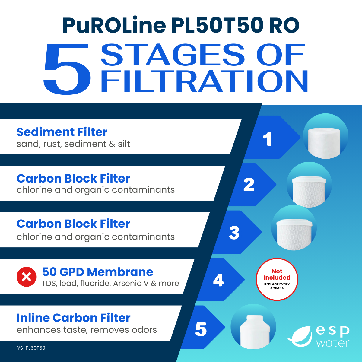 1-Year Filter Replacement Kit for PuROLine PL50T50 Reverse Osmosis System (RO Membrane Sold Separately)
