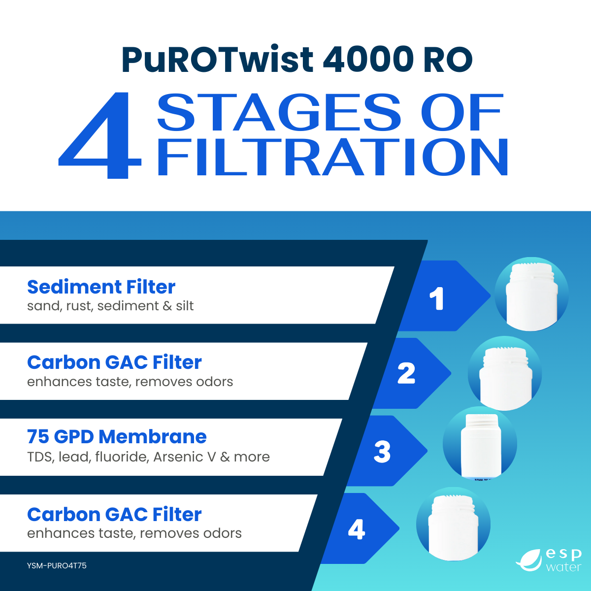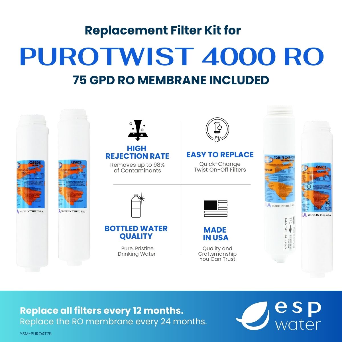 PuROTwist 4000 RO Filter Replacement Kit with 75 GPD Membrane