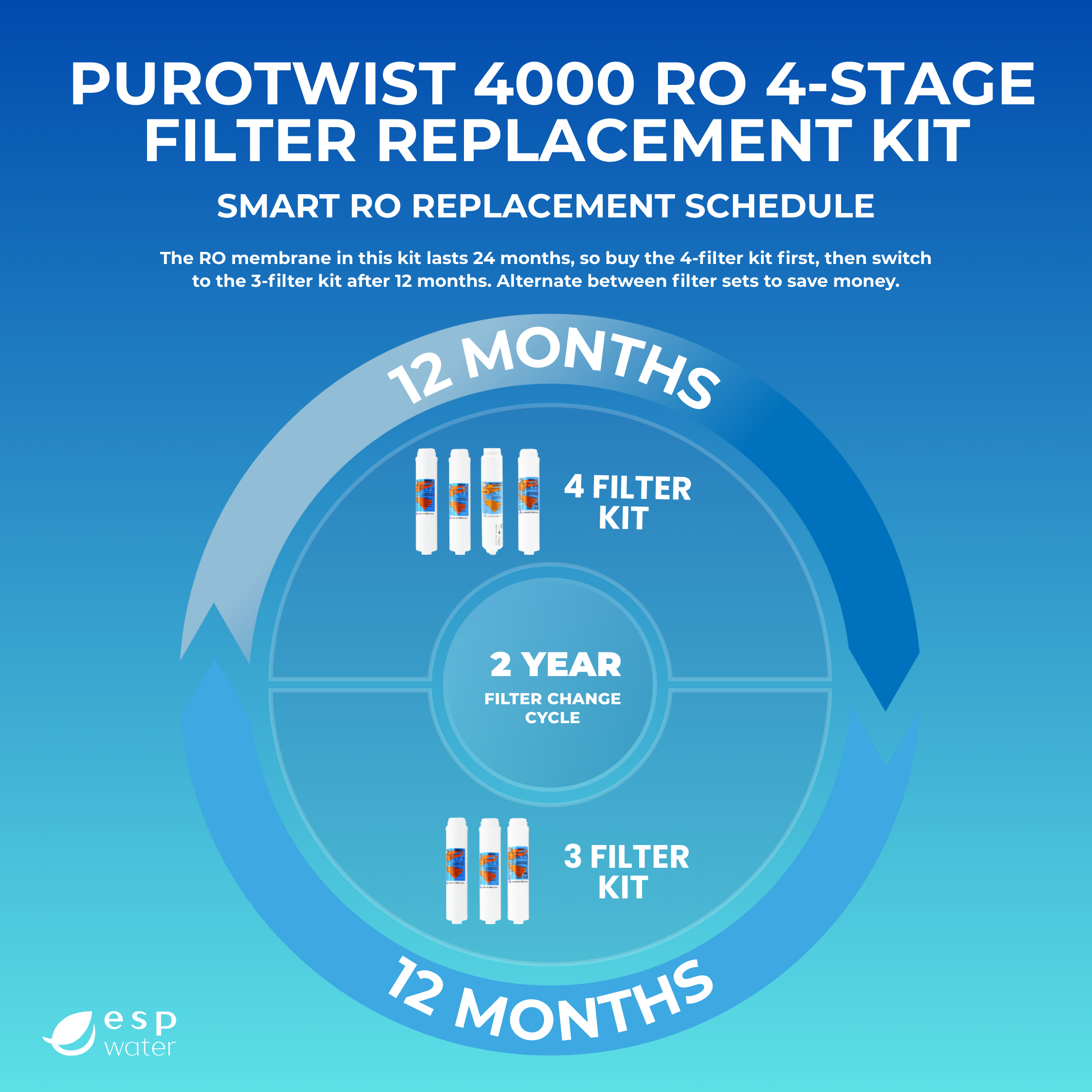 After the first year, you only need to replace the pre- and post-filters, since the RO membrane is still good for another year. This kit helps you save money while keeping your system performing like new.