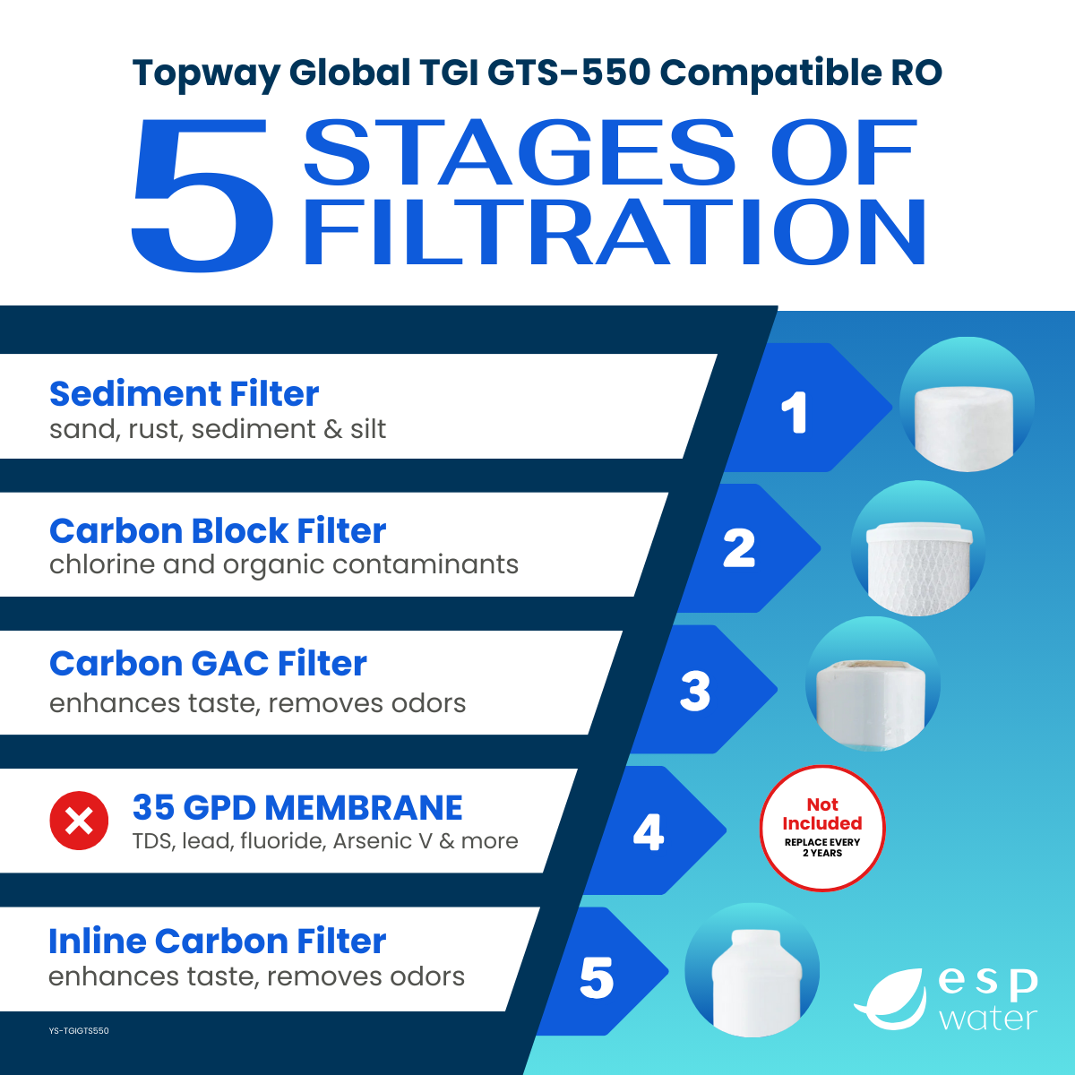 Kit de filtro RO compatible con TGI GTS-550 (la membrana se vende por separado)