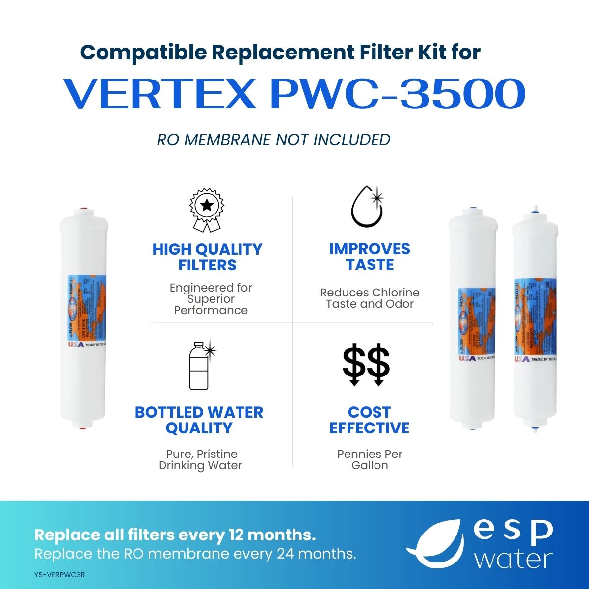 Kit de reemplazo de filtro para sistema de ósmosis inversa Vertex PWC-3500 (la membrana RO se vende por separado)