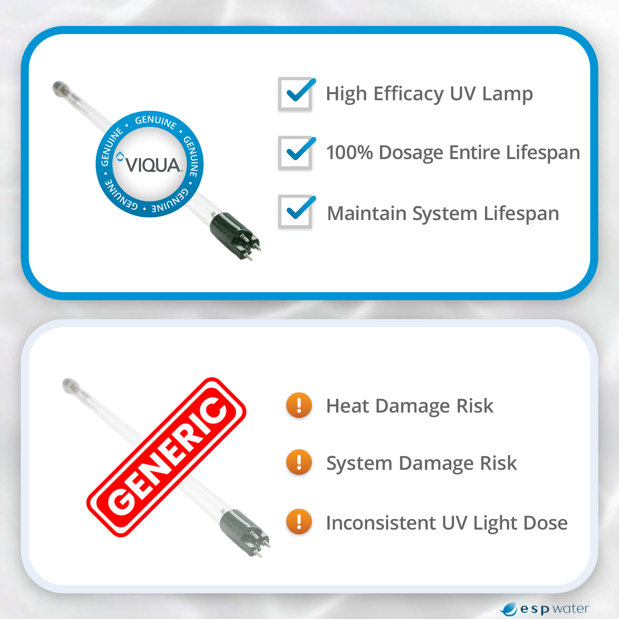 Why using a genuine VIQUA lamp is important: VIQUA UV systems and lamps are tested and certified as a complete unit. Using an authentic VIQUA lamp ensures proper system performance and water treatment. This video explains the 5 risks of non-VIQUA aftermarket lamps and how to identify authentic VIQUA lamps.
