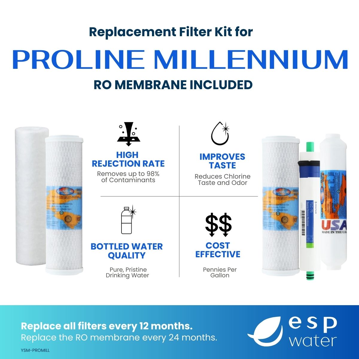1-Year Filter Replacement Kit with RO Membrane for Proline Millennium Reverse Osmosis System