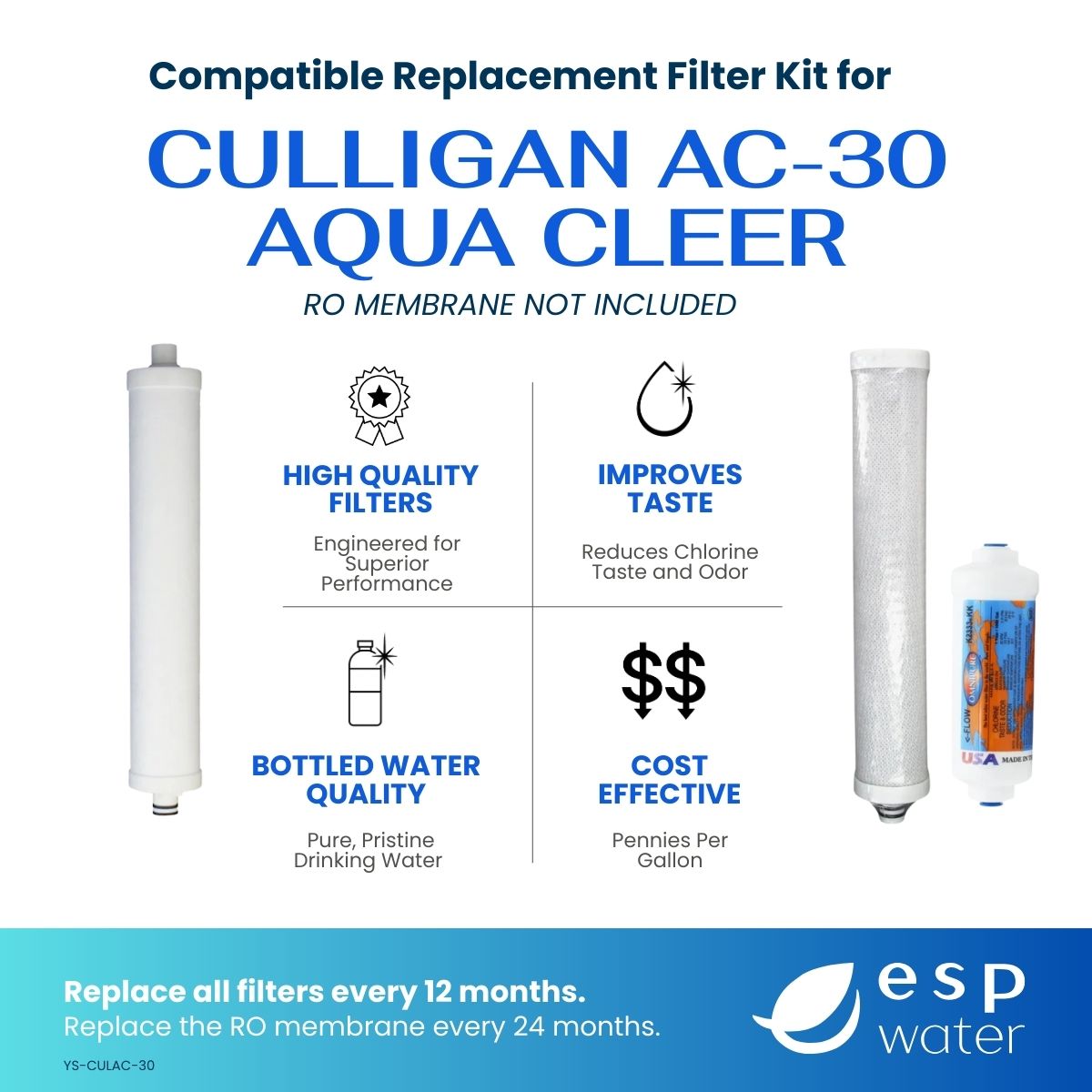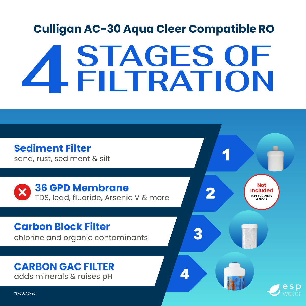 - STAGE 3 - 0x (RO Membrane M-T1812AC36 Sold Separately or with Replacement Kit YSM-CULAC-30) - Replace every 24 months