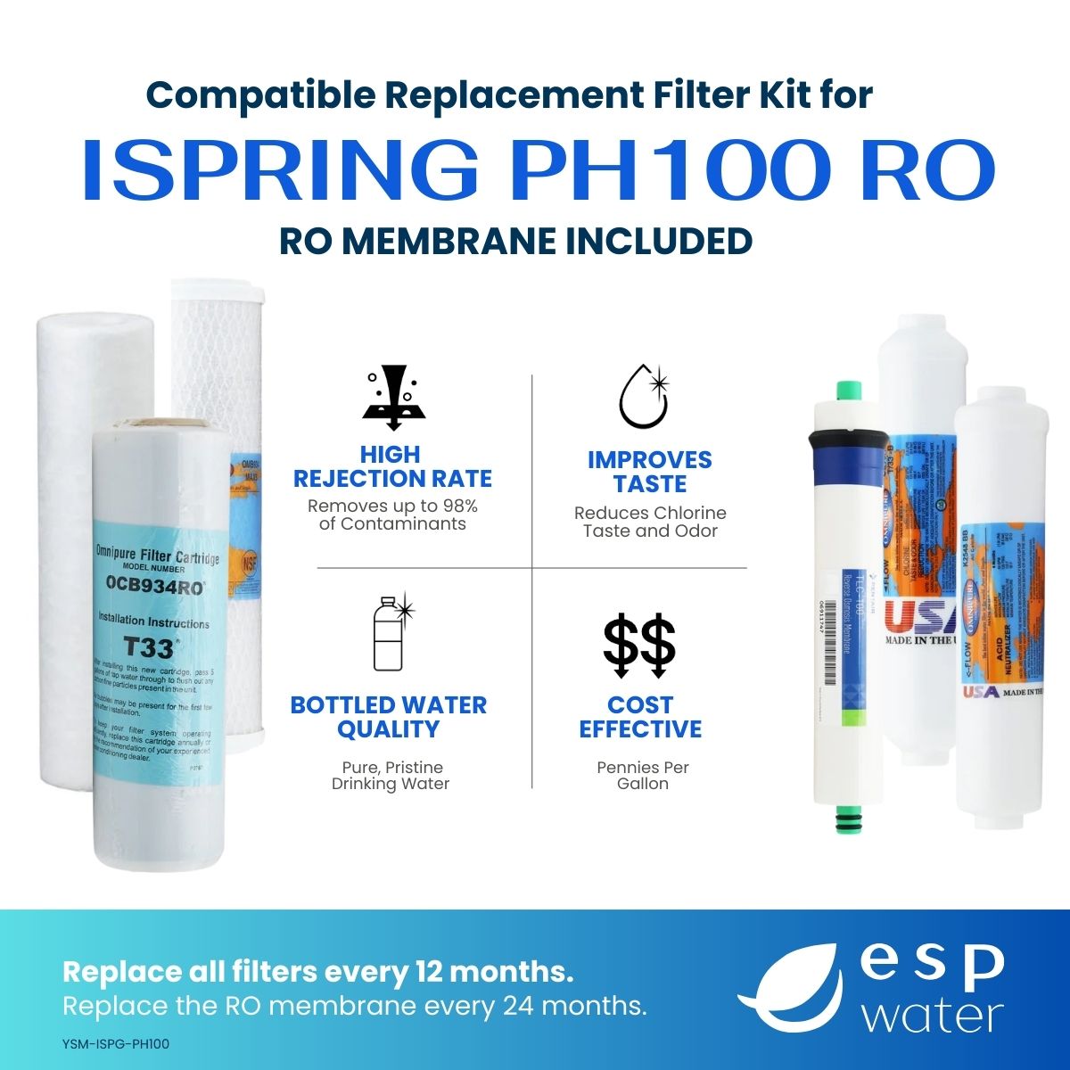 iSpring PH100 Compatible RO Filter Kit with RO Membrane