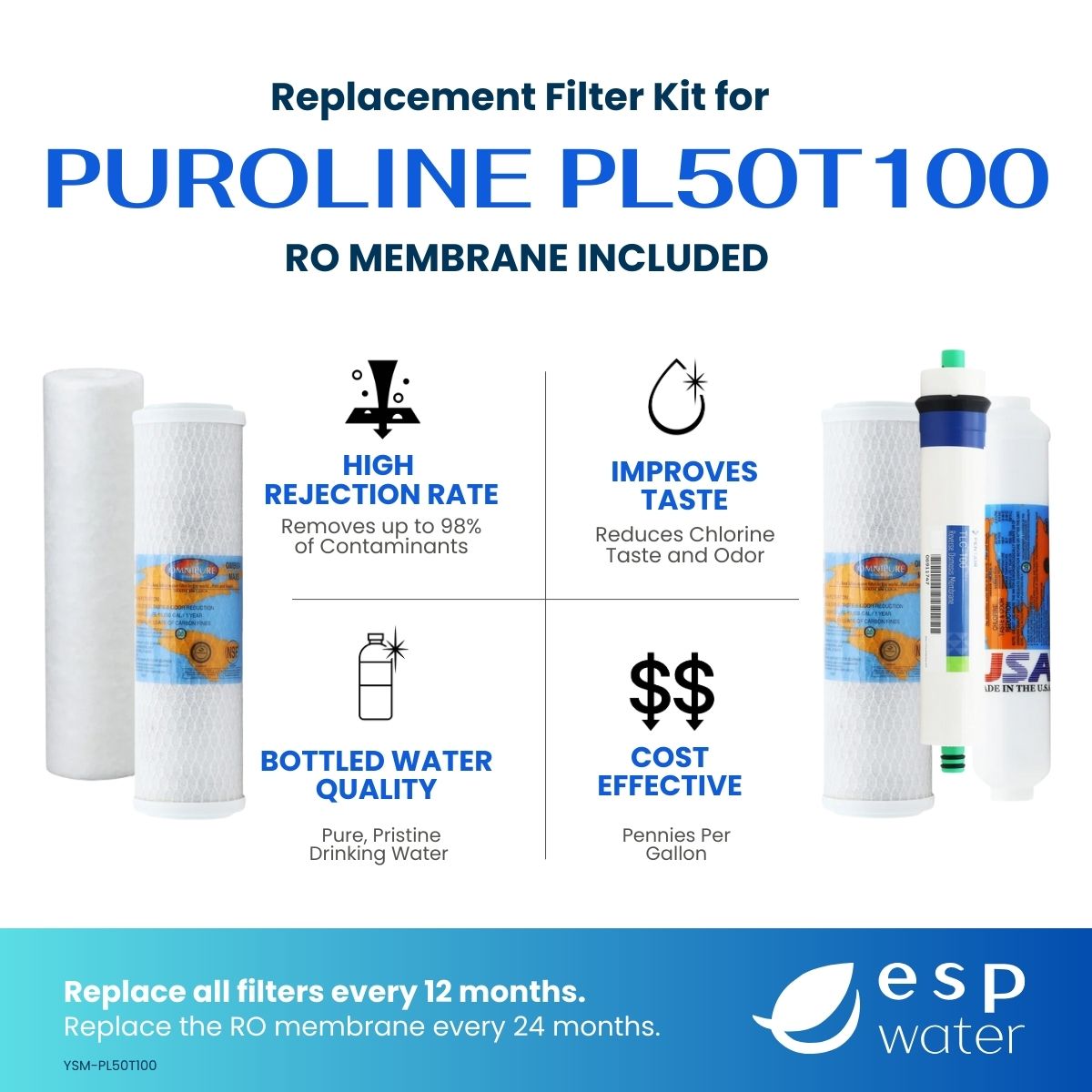 PuROLine PL50T100 RO Replacement Filter Kit with RO Membrane
