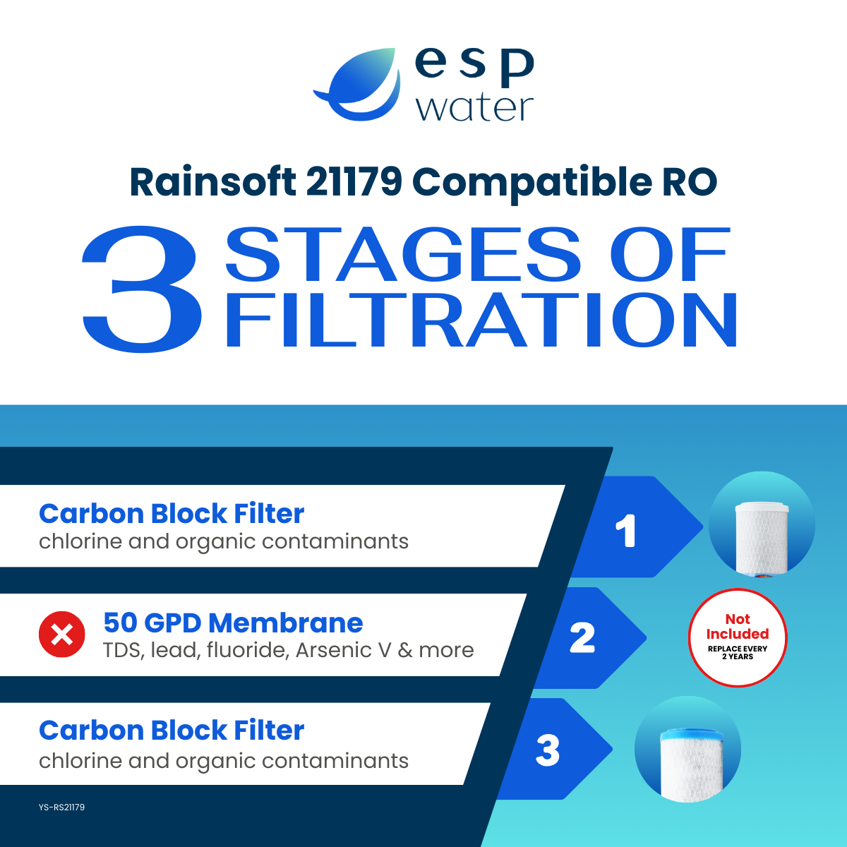 - STAGE 2 - 0x (RO Membrane TFC-RS9-50 Sold Separately or Included with Replacement Kit YSM-RS21179) - Replace Every 24 Months