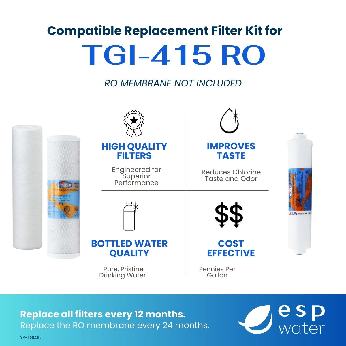 - STAGE 3 - 0x (RO Membrane 200358 Sold Separately or with Replacement Kit YSM-TGI415) - Replace every 24 months